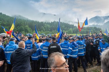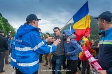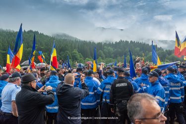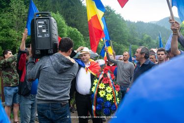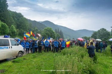 An angry Romanian crowd broke past a picket of praying ethnic Hungarians despite a massive police presence and began laying wreaths at the illegally erected stone crosses of purported Romanian war heroes in a WWI Hungarian-Austrian military graveyard.